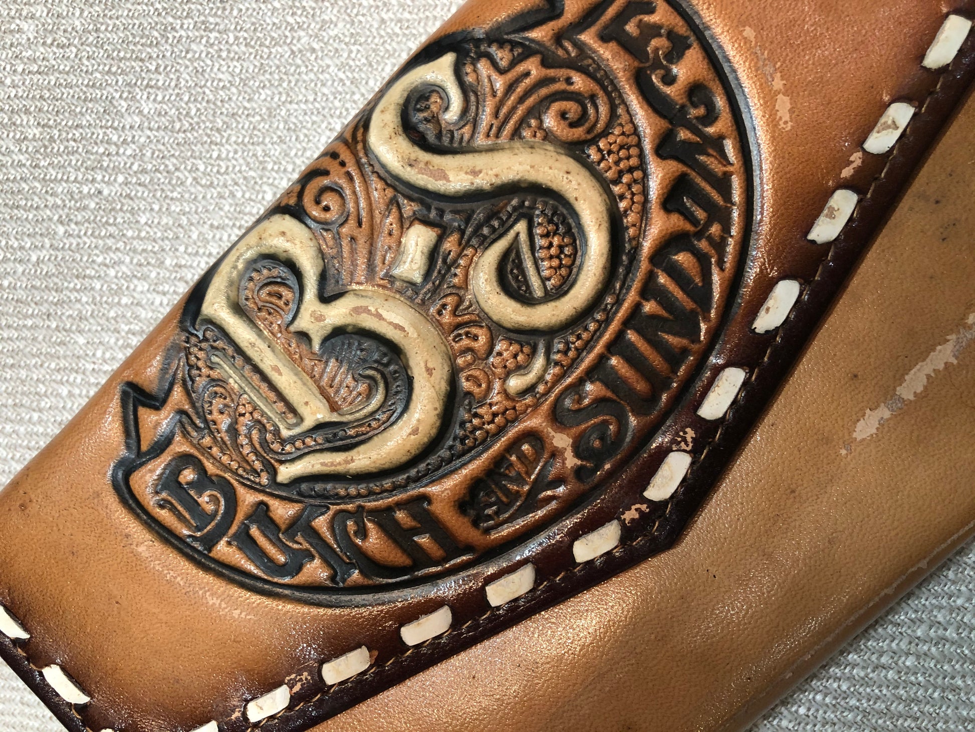 Butch Cassidy and Sundance tooled and buckstitched wallets. These suckers are super vintage and show some scuffs….But they are so stinking cool. This wallet doesn’t have credit card slots like modern wallets cause they were made before the days of debit/credit cards!!