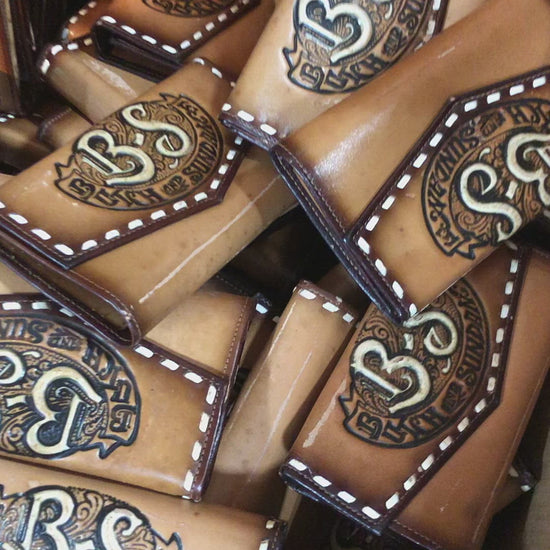 Butch Cassidy and Sundance tooled and buckstitched wallets. These suckers are super vintage and show some scuffs….But they are so stinking cool. This wallet doesn’t have credit card slots like modern wallets cause they were made before the days of debit/credit cards!!